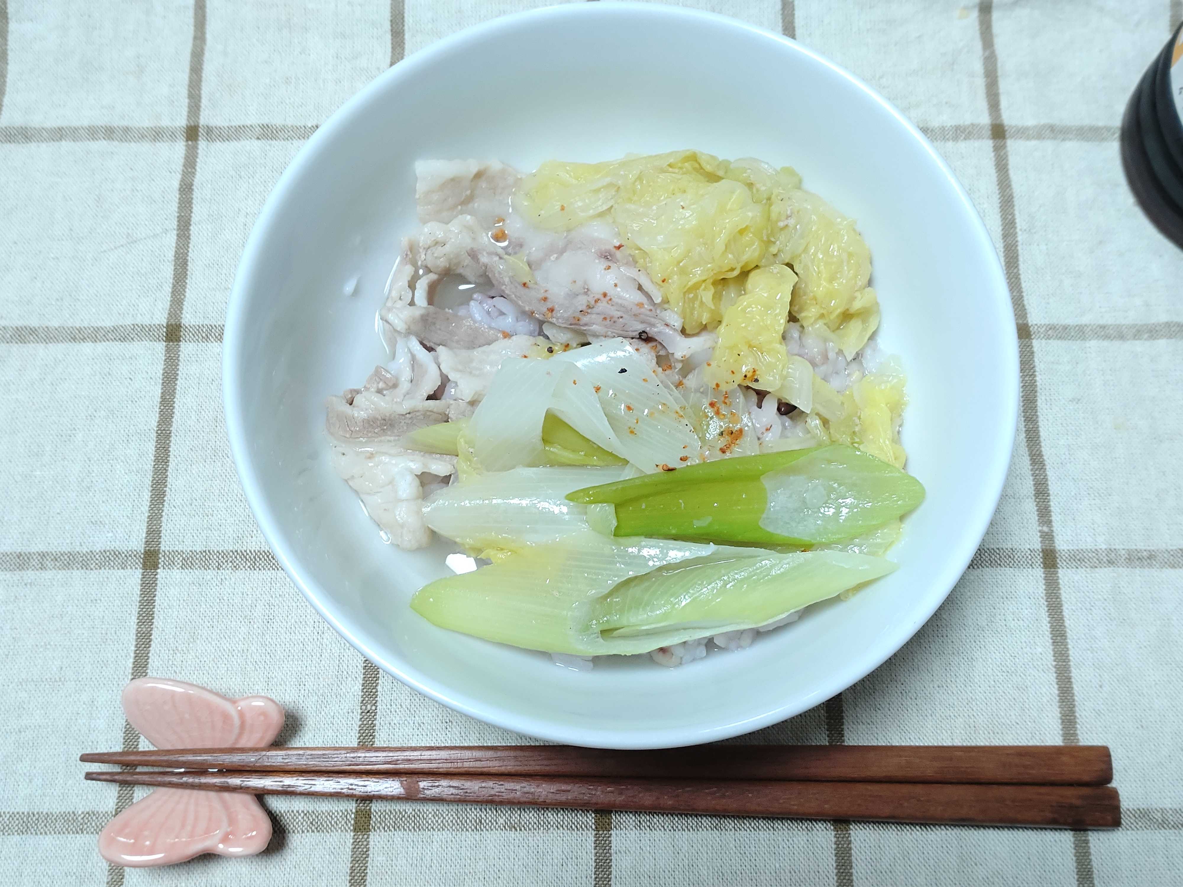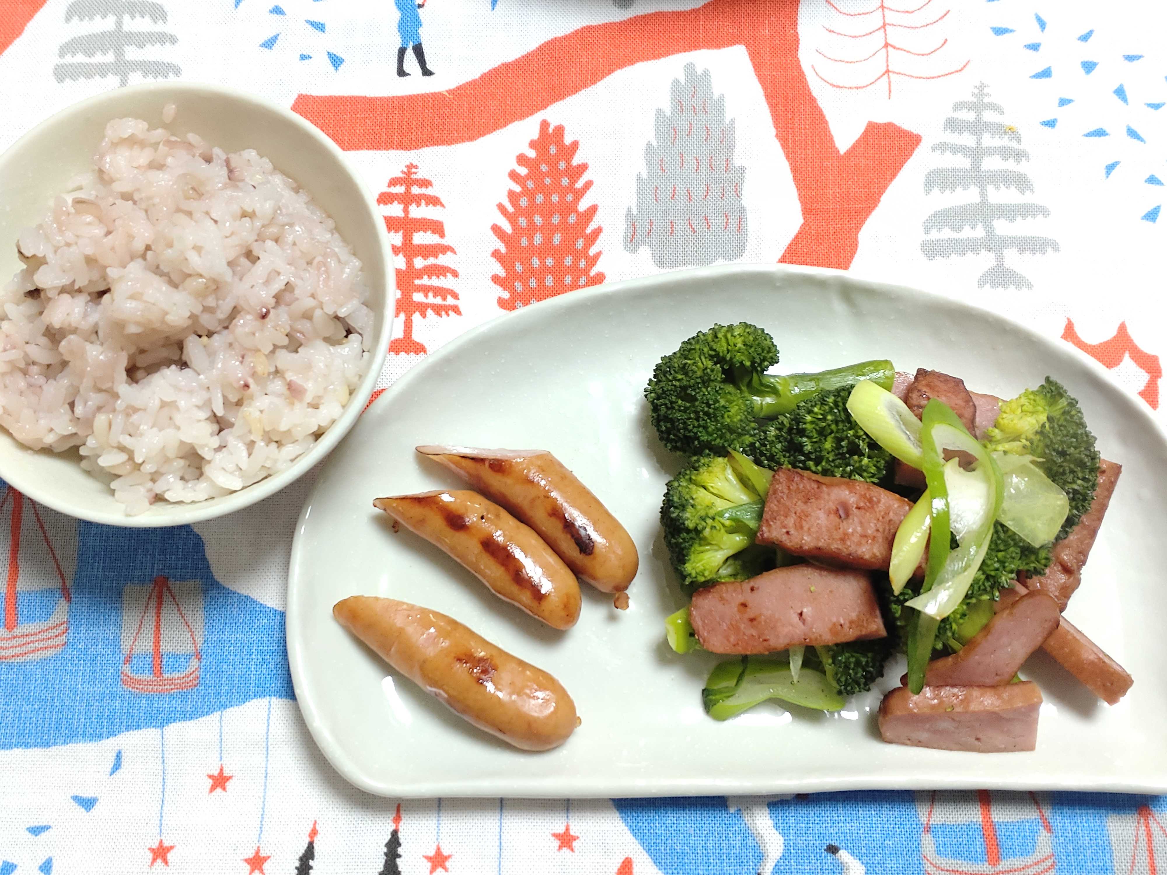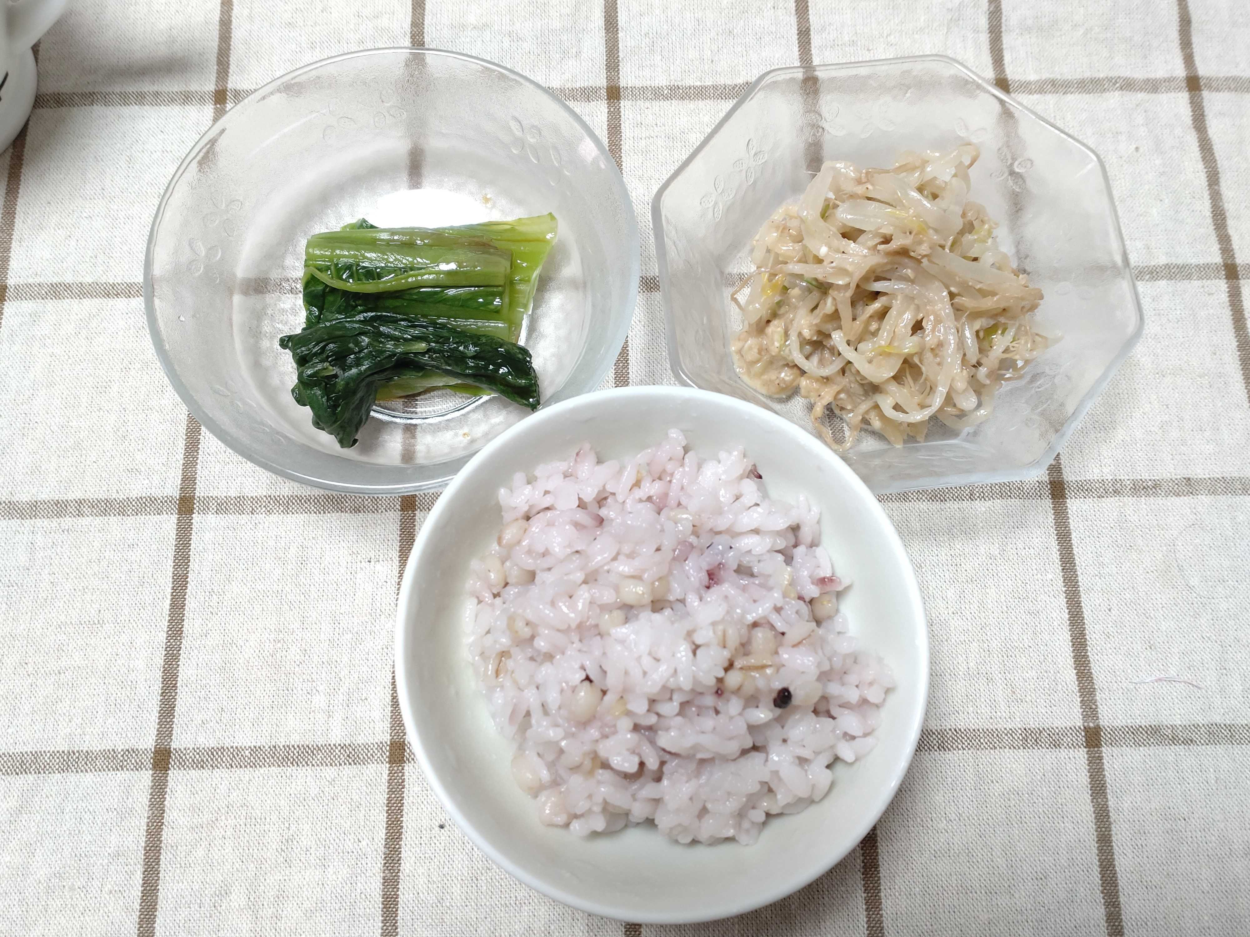 朝食味噌汁海苔巻き昼食電子レンジで作っだインスタントラーメン夕食ごはん水炊き200グラムずつ冷凍してあって使いやすい