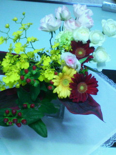 大阪の店舗の人とかもたくさん来ていただいて、お花とプレゼントと色紙を頂きました(^∧^)