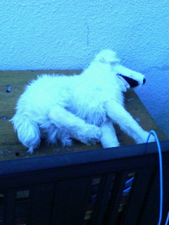 何かと思ってみると、柵のむこうに隠されたシロの姿が。。。
