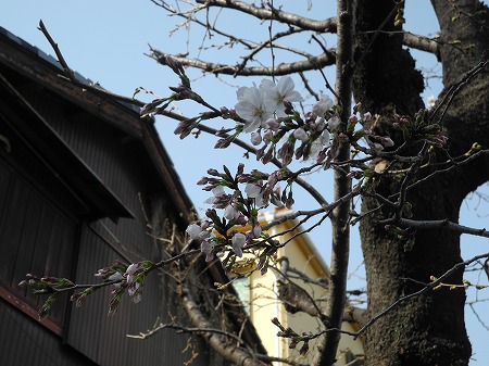 陽気に誘われて我家の桜の開花が始まり、それを見つめるyukiyukiの気分もワクワク。『春はいいですね~~~~っ』 『桜はいいな~~~~っ』去年の我家の開花宣言は3月30日で、4日早いが、例年に比べると少し遅いです。今年は家屋の取壊し工事や、それに伴う樹木の伐採をし、周囲の環境がすっかり変わった中での開花で、いつもだったら『奇麗やな~~』だが、今年は『頑張れよ~』。〇今年また わが一本の さくらかな (詠み人知らず)〇桜待つ 心はいつも 桜色 (詠み人知らず)〇桜だね 桜ですよの 声は風 (詠み人知らず)さて、今日は本来ならば半日型フィットネス デイサービスの日だが、工務店との打ち合わせの為にお休み。気温が25℃近くまで上がって過ごし易い1日だったが、相変わらず身体がシャキッとしないので、家の中でのんびりと。