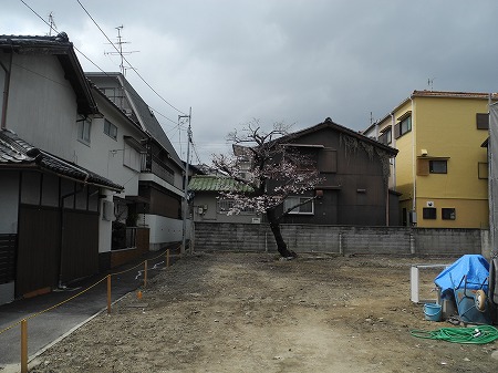 今日は公民館の書道教室の新年度の申し込み2日目。昨日は公民館へ出かけて受付のお手伝いをしたが、今日は、それ程混まないと思われるので事務員さんにお任せした。夕方5時前に公民館へ電話して、二日間の申し込み人数を教えて貰ったら、午前の部は30名(女性27名・男性3名)。午後の部は33名(女性30名・男性3名)で、計63名と云う事だった。昨日のブログでも書いた様に、定員は午前、午後とも40名で、まだ人数に余裕があるので、明日以降来られても申し込みを受理することにします。11日のブログで、取り壊す予定の全ての建物の取り壊しが終了したと書いたが、今日は古い家(2階建て)の門と路地に面したブロック塀の取壊しが終了。周辺の風景がすっかり変わってしまいました。上の写真は2月18日に写したもので、下半分に写っているのがブロック塀。上の写真に写っている建物、庭木は全て姿を消してしまいました。このことで、更に一層広く感じられ、残るは平屋の家屋の門柱と扉だけになってしまいました。その門柱は明日、倒す予定。スッキリした半面、寂しさを感じます。