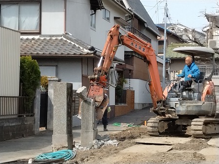 1番最後まで残っていた門柱が遂に倒され、姿を消した。2月19日から始まった取り壊し工事は、一応今日で終わり、ショベルカー2台の内、小さい方の1台が残って明日は地面を平らにする作業と片付けだけになった。途中で2,3日雨が降ったが、取り壊し工事は順調に進み、これからはyukiyukiが住む平屋の家屋の内部のトイレの改造と簡単な台所の新設の工事を進める。これで大きな山を一つ越しました。