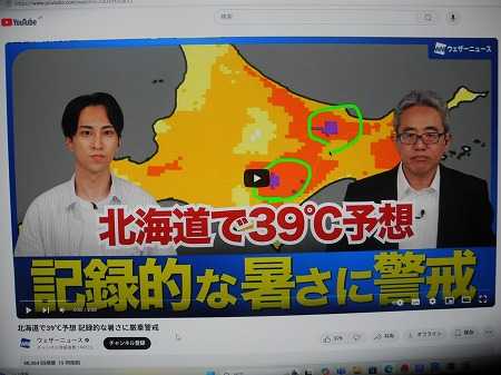 猛暑日とは、1日の最高気温が35℃以上になる日のことです。気象庁は地球温暖化の影響で35℃以上の日が増えたことから、2007年4月に「猛暑日」を予報用語に追加したそうです。最高気温が25℃以上の日は夏日(なつび)。最高気温が30℃以上の日は真夏日(まなつび)。夜間の最低気温が25℃を下回らない夜は熱帯夜(ねったいや)。酷暑日(こくしょび):猛暑日の俗称で、最高気温が40℃以上と予想される日。気象庁から正式に発表された言葉ではないそうです。昨日の天気予報では、上の写真のように北海道で39℃の予想が出ていた。その昔は、北海道は夏でも涼しくて、過ごし易いイメージを持っており、夏に北海道を旅行したい願を持っていたが、その北海道で39℃予想。結果は今日も全国的に猛暑になり、北海道の北見で39℃、帯広で38.8℃、佐呂間で38.6℃を記録。全国で1番上がったのが福知山で39.4℃。梁川(福島)の39.3℃。わが大阪は、35.5℃の猛暑日。もちろん、yukiyukiは、命が大事なので終日、クーラーを強にして在宅避暑状態。こんな状態がまだまだ続くので、病弱のyukiyukiにとって油断は禁物です。 【追記】昨日の15%の中身はこれ。やっぱりな~~~っ 世の中、そんなに甘くないですね。 トランプのやりたい放題。