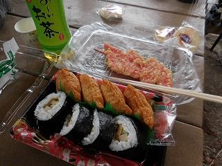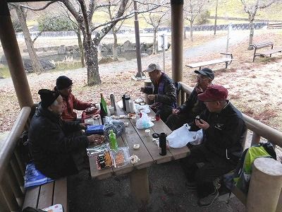 白毫寺 近くの児童公園内の屋根のあるベンチで“ お弁当タイム ”。( 11時40分 )