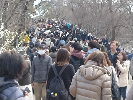 梅林横の坂道は人、人、人、インバウンドで大混雑。びっくり