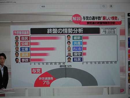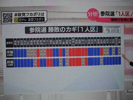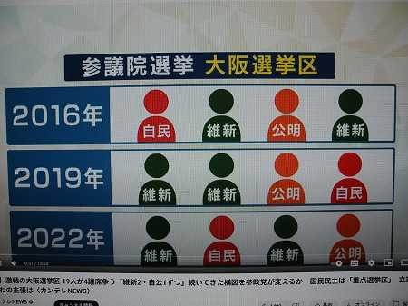 更に、4日後に迫った 参院選​ についても、テレビでは情勢分析が色々報じられているが、これにもあまり興味が湧かず、選挙公報も読んでいないし、大阪選挙区の立候補者の名前も殆ど知らないし、誰に投票するかは投票日当日に、会場に貼られた立候補者14名の一覧表を見て、その時の気分で決める心算です。ウィンク