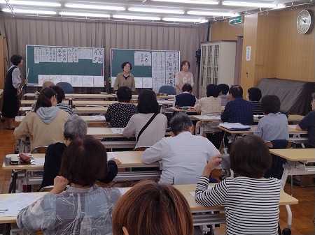 『秋祭りが無事済んで、ちょっと休養』とはいかず、今日は朝から公民館の書道教室。続いて夕方から全国地域安全運動 布施大会。祭りの疲れが出るか心配したが、無事に秋祭りを乗り切ったので、気分は軽く、脚の疲れは殆ど感じない。まず、9時半に公民館へ出掛け、教室の机の準備をし、午前中(2時間)の授業を受ける。花さそふ 嵐の庭の 雪ならで ふりゆくものは 我が身なりけり (入道前太政大臣)(歌意)桜の落花を誘うはげしい風が吹く庭では、まるで雪のように桜の花びらが降っている。降っているのは花びらだけれども、本当に年老いて、古びていくのは、実は私自身であったよ。この土、日は、気を使いながら身体を使って適当に動き回ったが、今日は一転して久しぶりに落ち付いて、静かに筆を進め、文字に集中。公民館での昼食を済ませ、一旦、家に帰って念のために横になって身体を休め、5時半から女性の防犯委員さん3人と一緒に車で東大阪市文化創造館での全国地域安全運動 布施大会に出席。大阪府警音楽隊の迫力のある演奏を聴いたり、オリンピックのアーチェリー種目の銅メダリスト・古川高晴選手の記念公演を聞いたりし、大会は約2時間で終わった。大会終了後、近鉄・八戸ノ里駅近くのレストランで4人で食事を摂り、秋祭りの話をしながら楽しく過ごし、21時30分に帰宅。そんなこんなで、今日は変化のある1日を過ごした。 昨日のブログでアップしたボードの日にちが間違って19日になっていました。
