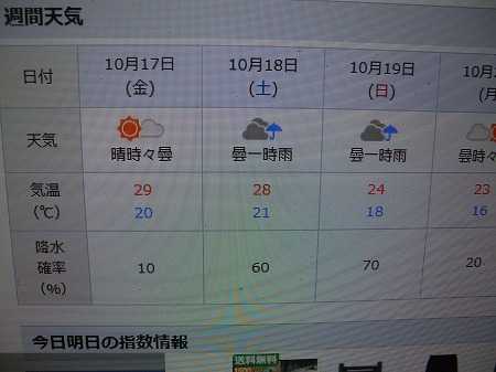 いよいよこの週末から秋祭りが始まるが、天気予報では、土、日は雨模様。土曜日は、後半に崩れて60%、日曜日は前半に雨が残り70%となっている。もちろん、雨でもダンジリの曳行は行われるが、交通整理に当たる防犯委員としては、もしかしたら雨合羽を用意する必要があり、何よりも気分が重い。果たしでどうなる事か今から心配だ。さて、話が変わるが、政局が混迷し、自民党の高市早苗総裁が立憲、維新、国民の代表と個別に会談。立憲、維新、国民が党首会談するなど、与野党の多数派工作が続いている。自民党がどの党と手を結ぶのか野党連合が出来るのか高市氏が首相になれるのか全く先が読めない。ワイドショウではコメンテーターが好きな事を言ってるし、各党の中にも色んな意見があり、果たして、この先どうなる分からず、ワイドショウを見る気もしない。一方、見ていてハッキリするのはスポーツで、今は日本のプロ野球でもアメリカの大リーグでも優勝に向けて必死の戦いが繰り広げられており、目を離せない。阪神タイガースが優勝するのか ドジャースが2年連続のワールドシリーズ(WS)に進出するのかさて、今日は午前中、半日型フィットネスデイサービスでビーナスクラブへ。近々ウォーキングマシンを増やすらしく、クラブ内の色んな機材の配置が換わったり、皆で座る方向が変わったりでクラブ内の雰囲気がごちゃごちゃしていた。もちろん今日も機材を使って積極的に動いて、身体を解(ほぐ)してきたが、身体の調子は、相変わらず重い。なんにしても、週末の天候が心配。