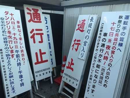 yukiyukiが支部長を務める防犯支部は、4町会のブロックがあり、本来ならば委員66名で構成し、活動しているが、現在は人数が44名しかいない。人員の補充に苦労しているが、最近は委員の成り手が年々減少し、一方、高齢化が進み退任する人が多くなり、上記のように少ない人数で地域での防犯活動を展開している。yukiyukiが属している町会(ブロック)の防犯委員は11名で、今夜は自治会場会議室に集まって秋祭りにおける各自の出番を決めた。先ずは、祭りの1週間前に地域の住民や車の運転手に対してダンジリ曳行の協力を呼び掛ける看板22枚を立てる作業があり、2日間のだんじり曳行本番に伴う交通整理と、だんじり曳行の前夜に執り行われる長提灯の宮入りの警備に当たるので、これらに於ける出番を今夜の会合で決めたのです。委員さんの自発的な申し出により、スムーズに出番を決めることが出来、約1時間弱で、会合を終えた。1っ歩づつ秋祭りに近づいています。これで、何とか秋祭りを乗り越える段取りが付いたので、ホッとしている。