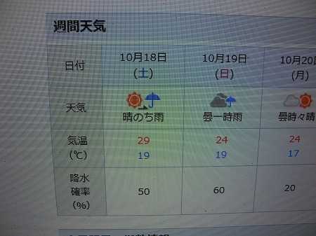 昨日のブログでも書いた様に、ダンジリの曳行が行われるこの週末の土、日曜日の天気予報では雨が降りそう。昨日の予報より降水確率が2日とも10%低くなっているが、それでも50%と60%。そこで、念のためにビニールの雨合羽を準備する事にして、今手持ちの雨合羽を調べたら10着あるので、5着を買い足した。祭りでは5台のだんじりが曳行されるが、その内1台は隣の防犯支部(徳庵支部)の活動範囲の町会に属しており、毎年、当防犯支部と協力して交通整理などに当たっている。事故無く楽しい秋祭りにすべく、今日は10時から隣の支部の支部長さんと、細部に渡って打ち合わせを行った。これで一応、全ての準備を終えたので、後は雨が降らないように祈りながら本番を待つだけ。でも、yukiyukiの体力、脚力がどこまで持つかちょっと心配。