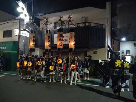 明日からのダンジリ曳行を前に今夜は『長提灯の宮入り』。19時40分からyukiyukiは他の防犯委員さんと一緒に交通整理。『長提灯の宮入り』は人よりも遥かに大きな長提灯を稲田5町会が各町4本づつ、計20本を保存管理しており、長提灯は持ち運ぶ者と補助数人が担当し、宮入音頭(伊勢音頭)の唄声と賑やかな掛け声とともに稲田八幡宮まで町内を1列縦隊で道中します。夜の9時過ぎに神社の鳥居前に集合した20本の長提灯は1本づつ鳥居をくぐり、宮入りを行います。この稲田八幡宮に伝わる伝統行事、長提灯の宮入は古来、河内地方の村々で秋の五穀豊穣を祝って盛大に行われて来ました。神社までの道(一方通行)は道幅が狭く、多くの人出で混雑し、自動車、自転車の通行が不能になるので、当支部の防犯委員8名と徳庵支部の委員さんが協力して交通整理に当たります。今までは、毎年、yukiyukiは23時まで現場で交通整理に当たっていたが、今年は、体力が落ちて無理が利かないので、22時に他の委員さんに後を頼んで帰宅。天気予報では、明日はあいにく夕方から雨が降るとの事で、それを心配しながらブログしています。