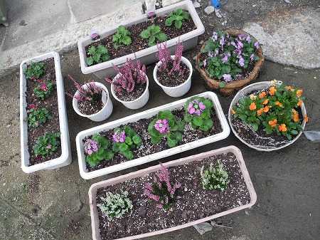 今日も気温が20℃を超え、穏やかな天候の中、庭に出て昨日に引き続いて園芸作業を楽しんだ。と言っても疲れないように休み休みの作業。 昨日は、ここまで。今日は手持ちの花の苗を全て、プランターやハンギングバスケット等に植え込んだ。作業の合間に、久しぶりに庭でのんびりコーヒータイム。実は、以前からあったガーデンテーブルセットを、家の取壊しの時に処分してしまったので、先日、新しく3点セットをネット購入したのです。テーブルはモザイクタイルテーブルで、椅子は折りたたみ式で、yukiyukiは大変気に入ってます。これからは段々寒くなって来るが、暖かい日には表に出て一人でのんびりとコーヒータイムを楽しむ事にします。