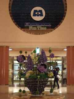 リゾートへ出かけると、時々通る アンバサダーホテルいつも気になるのが、ホテルレストランのお花その時々のアレンジが飾られています。ロビーにも・・・・今はモンスターズインクのイベント中だからでしょうか青を基調の紫陽花のアレンジです。