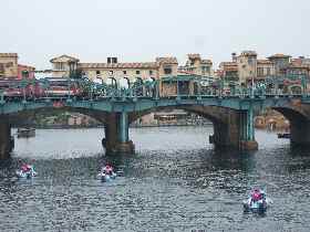 Disney Sea のハーバーショー ミシカに出演?する ボート待機中です。ハーバーを一周する トランジットスチーマーラインのお船も・・・