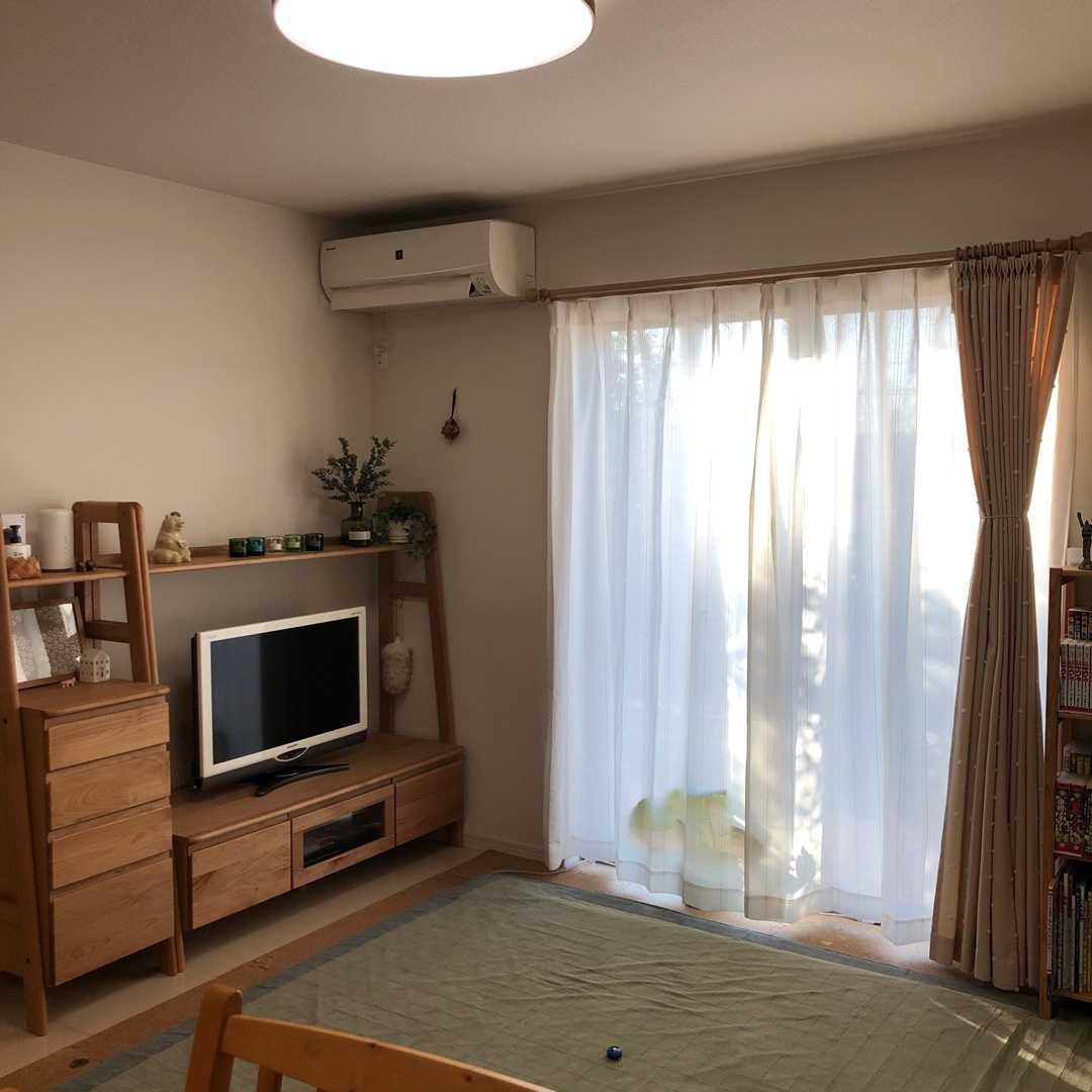 こんにちわー週末は雪が降ると予報が出ていた東京。子ども達はとっても楽しみにしていたのですが、雪は降らず。。。「雪降らなくて、残念だったねぇ~」と言いつつ、ホッとした私です*********************************このコロナ禍、去年5月の非常事態宣言もあって、お家を整えていく機会が増えました。特に変貌を遂げたのが、やっぱり家族が集まるリビングです!5月の非常事態宣言中に、リビング学習用に設置していた学習机を移動し、無印のスタッキングシェルフでランドセル収納場所を作りました。(無印・ニトリ・100均で、ランドセル収納)その後、リビングのレイアウトを変更し、ソファーを撤去!(ソファーのない生活始めました。)ハンドメイドで、カーテンを作ってみたりもしました。(【ハンドメイド 】プケッティの生地で、カフェカーテンを手作り)(【ハンドメイド 】続!プケッティの生地で、2way階段仕切りカーテン!)そして、大物のテレビ台を買い替え!(新しいテレビ台!)・・・と、リビングは1年で大幅に変わりました。そして、今年に入って第一弾となるリニューアルが、リビングのレースカーテン!カーテンはもともと破れたところがあり、買い替え対象でした。入居当時に、ニトリで買ったカーテン。色褪せなどもなく、きれいな状態でしたが破れてしまっては仕方なしです。今回もニトリにて購入。2回ほどニトリに行き、いろいろ物色して決めました~■キャッチCグランス ベージュリビングには、掃き出し窓が1ヶ所、腰高窓が2ヵ所あります。掃き出し窓の方は既成サイズで問題なかったのですが、腰高窓の方はオーダーメイドにしました。前回買ったときは、腰高窓の方も既成サイズを買ったのですが、窓に対してカーテンがちょっと大きめになってしまい、重たい感じになってました。なので、次にカーテンを変えるときは絶対オーダーメイドにする!と心に決めてました(大げさw)カーテンを変えたリビングがこちら!腰高窓の方に、以前は厚手のカーテンを付けていたのですが、やぼったく見えたので今回思い切って外してみました。こちらの窓の先は、お隣の家があるのであまり窓を開けることがありません。なので、カーテンは1枚タイプにして、すっきりとするようにしてみました。(ここの窓はカーテンではなく、ブラインドにしたかった。。。)実は、カーテンが破れてから1年ほどたってたので、やっと買い替えが出来てうれしい~~リビング改造最終章 第二弾はまた改めて~下のバナーを押していただけると、ランキングポイントが入ります!皆さんの応援のポチっ♪が、日々の更新の励みです!よろしくお願いしますm(_ _"m)こちらも宜しくお願いします!