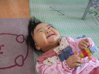 最近、みーたんは二つの芸をします一つ目は、お手てパンパン「はい、シャンシャン♪」と声をかけると、ほぼ100%の確立で手をたたいてくれます。二つ目は、コレ。首をかしげますかわいすぎる~おててパンパンに続いて首をかしげることもあるし、単独でかしげることもありますが、とにかくかわいい親ばかの私には、もうたまらんって感じです。どちらも家では教えていないので、初めて見たときはビックリしましたが、今では何回もやってもらって楽しんでいます。みーたんも嬉しそうにやってくれます♪ そうそう、くしゃみがおもしろいらしく、自分がしても人がしても必ず笑います。声を出して、本当におもしろい!!って感じで笑ってくれます。くしゃみの真似でも笑います。 みーたんと一緒にいると、笑ってばかりです