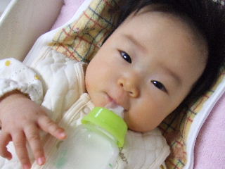 母乳が足りていないのか、飲みだすと1時間以上もおっぱいを離さないミー。母乳にこだわっていたけど、ミーの為にはミルクを足したほうがいいのかも・・・4月から保育園に預けて仕事復帰するし・・・ということで、ミルクに挑戦!これだと、成功したみたい?実は、全然飲んでくれなかったのだ。 ガーン(*_*)最近、哺乳瓶型のおもちゃをチューチュー吸ってたので、なんとかなるかも♪って思ってたけど、甘かったみたい。こりゃあ、長期戦で哺乳瓶の練習しなくちゃね。