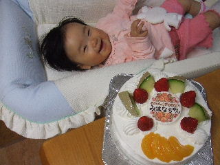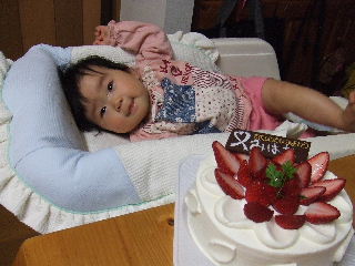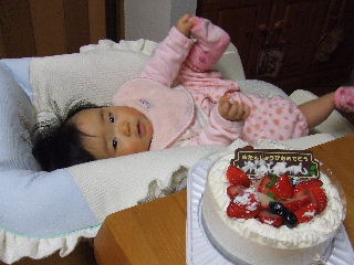 日記、さかのぼって書きます。 今日で7ヶ月です。早かったな~。 今月もケーキでお祝いしたよ