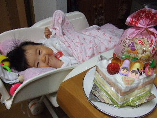 8ヶ月ケーキが気になって、とうとう触ってしまいました。大きくなったね 9ヶ月ケーキ狙ってますこの後、触っちゃいました