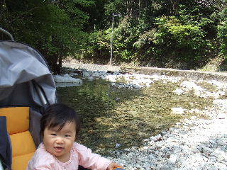 昨日のお話です。いいお天気なので、お弁当もってドライブに行ってきましたこんなところへ↓水も空気もキレイで、とっても気持ちよかったですみーたんも喜んでくれました河原で食べたお弁当、美味しかったな♪ ちなみに今日は、みーたんの服を買いに行って、それからお庭の草引きetc.