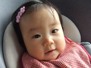 前髪が伸びてきて目に入るようになったので、こんなん買いました。かわいい売り場には小学生の女の子がたくさんいて、「ママーどれにしよう?」なんて騒いでいました。その子たちに混じって、だんなと私はみーたんにいろいろつけてみましたよ 迷いに迷って、これにしましたおんなじような写真何回も出すなってだって、かっわい~んだもん みーたんも気に入ってくれたみたいでこの笑顔 親ばかですねでも楽しいです