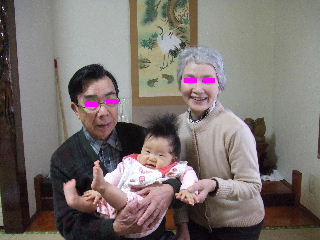 またまた久しぶり。ミーにかかりっきりで、なかなか日記書く気になれなかった・・・まとめて書きます。他県に住む私の親が、ミーに会いに来た。4ヶ月ぶりだ。写真やビデオでミーを見ていたけど、やっぱり大きくなったねと喜んでいたミーは知らない人が来た!とグズグズ・・・それでも、久しぶりに親に会えて、私は嬉しかったし元気になった以前は親が嫌いで、会いたいなんて思わなかった私。ミーを産んで、親の大変さとか愛情とかわかることがいっぱいあって、親に対する気持ちが変わった。今は、親に感謝している。気付かせてくれたミーにも感謝している。私の大切な親やミーを大切にしてくれるだんなにも感謝している。みんな、ありがとう