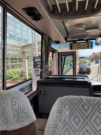 今日は鳥取空港から倉吉へリムジンバスで移動今日は鳥取空港から倉吉へリムジンバスで移動します。初めてですね。機内に忘れ物した人がいて、待っています。のどかですね。