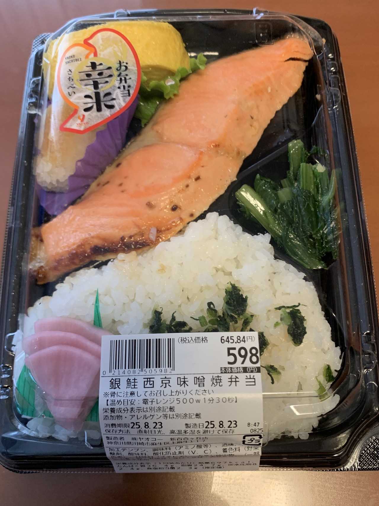 商品研究 「ヤオコー」の「銀鮭西京味噌焼弁当」本体価格598円を試食「ヤオコー」の「銀鮭西京味噌焼弁当」本体価格598円を試食します。どーんと鮭と鉄板玉子焼きの「ヤオコー」の定番弁当。定点観測で購入しますが、内容も固定化して安心の定番って感じですね。定番はいつも同じにあるというのが理想ですね。