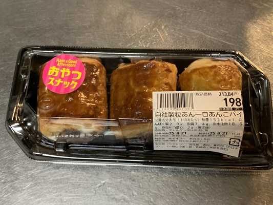 商品研究 「ヤオコー」の「自社製粒あん一口あんこパイ」本体価格198円を試食「ヤオコー」の「自社製粒あん一口あんこパイ」本体価格198円を試食します。見た目通り、味は予想できる味ですが悪くはないと思います。溶かしバターまたはバターソースをかけたらどうなんでしょう。