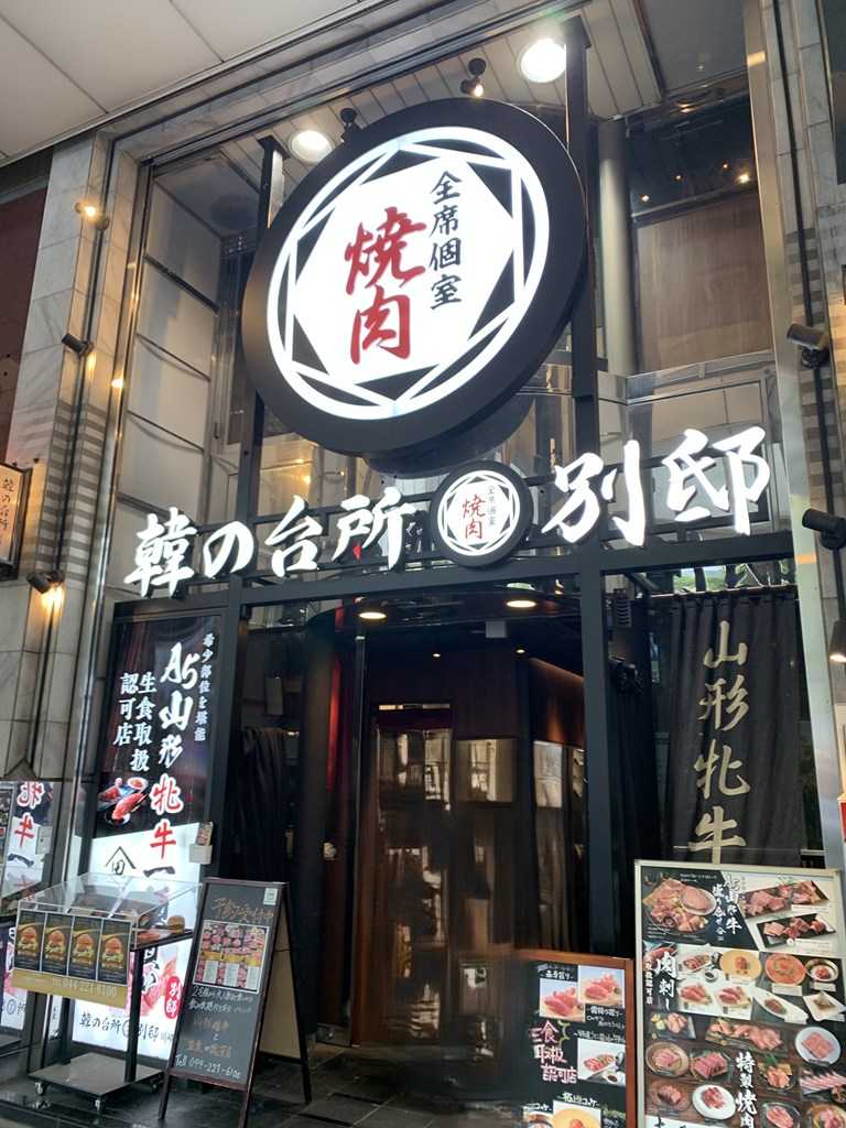 韓の台所 別邸 川崎店 @川崎駅 〜全席個室で山形牛一頭飼い 今日は焼肉店の加点要素の研究に川崎へ。昨日は蒲田でしたけど。今日は山形牛一頭飼いの「韓の台所別邸」です。川崎駅から五分くらいのところにあります。店は、友人の加藤雅彦の「にくtatsu」のように全席、個室、半個室のようです。17時前、お店の前には開店待ちの人が数組おりました。入り口でジェームズですと名前を告げると、一階奥の半個室席に通され、途中、キッチンから店長らしき人が笑顔でお出迎えです。店長がテーブルに来て、おすすめを説明してくれます。本日は店長さんおすすめの山形牛の勉強をしたいと思います。私が選ぶと、カイノミとツラミとブリスケしか選ばないですからね。笑まずはノンアルコールビールから。お通しは牛タン塩麹煮込みほろほろと柔らかく煮込んだ牛タン。煮込みはあっさりして美味しいまず、加点要素ですが、山形牛 加点要素の和牛、牝牛、一頭飼いがありますね。ロース肉のユッケユッケはシンタマとロースの2種類あるそう。今日は、売れ筋のロースにしました。雲丹醤油を少しずつかけて。お好みで味変カンボジア生胡椒、青山椒の粉青山椒が好みかな握り綺麗な脂で美味しい。山形牛おすすめ四種盛り赤身はトウガラシとランプ、霜降りはリブロースとイチボの四種。赤身と霜降りを交互に食べて欲しいと赤身は塩昆布で、リブロースはガーリックチップで8切れ食べられるかなと思いましたが、あっさりした脂で食べられました。でも、お肉はこれで十分そうです。まず、トウガラシ。塩昆布でいただきましょう。塩昆布ということは赤身の味は淡いのでしょう。続いてリブロース。軽いですね。てりが出てきましたね。融点は30度弱くらいなのかな。イチボを焼きます。肉質の糖分は弱めですね。ここで、ICHIRO's モルトをいただきましょう。ストレートで。熱海の「Negroni」以来ですね。スタッフがウイスキーを注文の方にはと隠れメニューを持参してくれました。でも、今日はこんなところで、〆に。〆はコムタン温麺にしましょう。麺が透き通ってますね。冷麺の麺なのかな。店長さんの笑顔が大変感じ良く、テーブル担当の人も食べ方の説明を丁寧にしてくれました。帰りしなに女性スタッフに食事の感想を聞かれました。初音鮨の大将みたいにどの料理が印象に残りましたと聞かれなくてよかったです。その女性スタッフがまた感じ良くて。全体として、なかなか良い雰囲気のお店でした。韓の台所 別邸 川崎店神奈川県川崎市川崎区砂子2-1-10電話 050-5456-6416