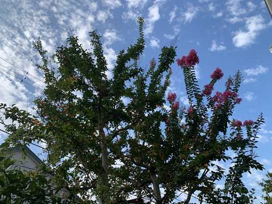 ジェームズオオクボ植物記 青い空と桃色の百日紅とても良い風景です。青い空と桃色の百日紅とても良い風景です。