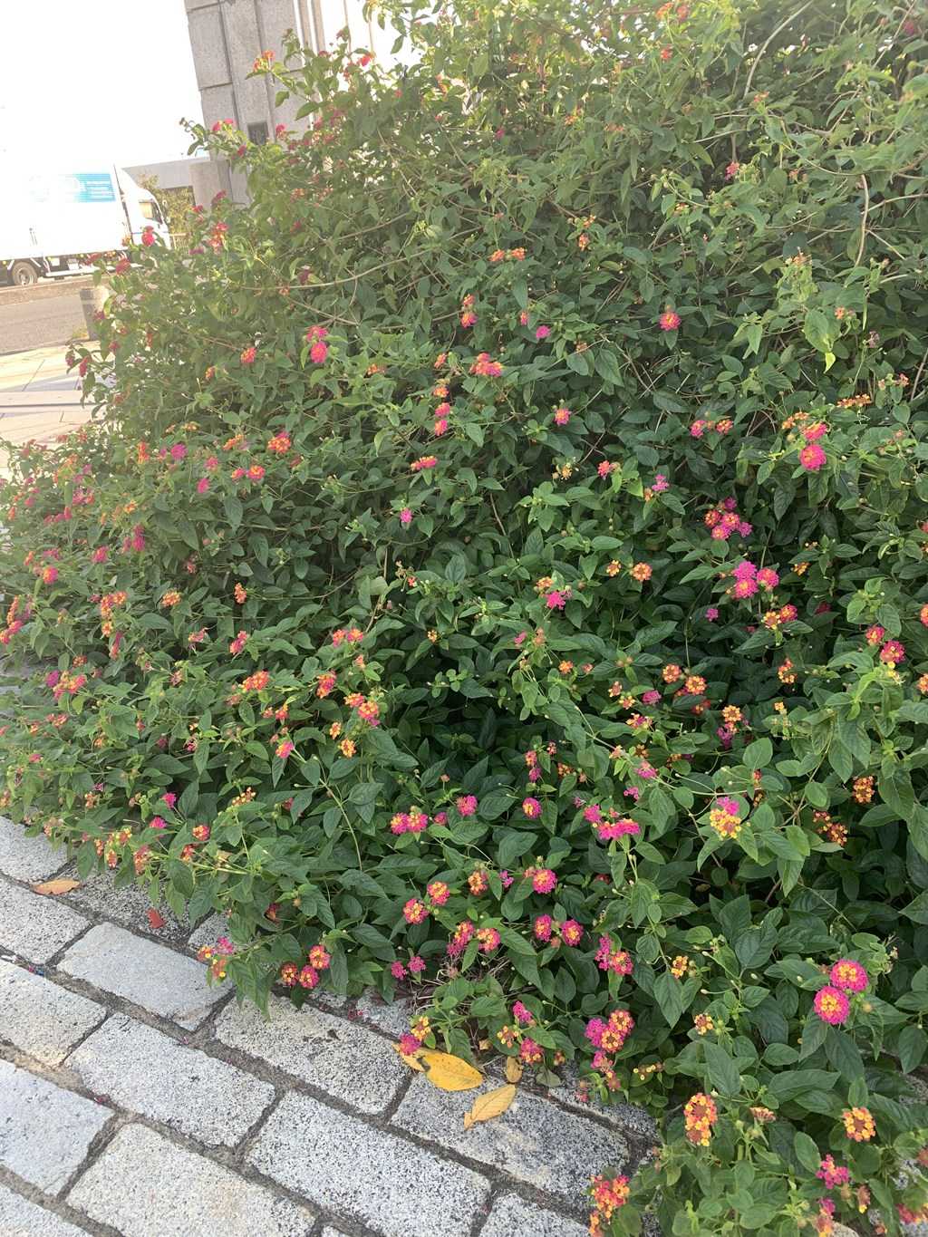 ジェームズオオクボ植物記 横浜中央卸売市場の近くで咲くランタナの花横浜中央卸売市場の近くで咲くランタナの花。アプリを見ると見た目はかわいいが、すべての部位に毒性があるとのこと。葉に触れただけでも炎症をおこすとのこと。あれま。