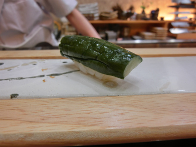 料理研究 大阪府堺市「鮨匠津田」 の西京味噌漬け胡瓜 過去の勉強録より大阪府堺市「鮨匠津田」 の西京味噌漬け胡瓜