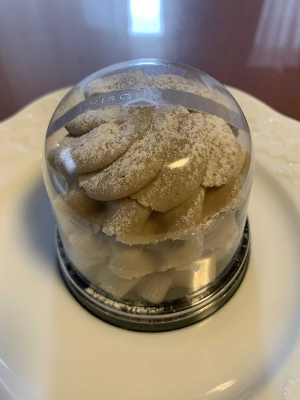 蒼菓 @麻布台ヒルズ 11月4日オープン 江口シェフの店でパフェの勉強をした後、大橋さんがやっているはずのクッキーの店を探してうろちょろしていたら、「蒼」の峯村康資 シェフが店頭で呼び込み?をしてました。挨拶をして話を聞くと「蒼菓」と言う菓子屋を本日、オープンさせたそうです。さらにいきさつを話すると、探していた大橋さんの店の跡地にこの店ができたとのことです。峯村康資 シェフのパティスリーだから剛速球でおいしいに違いない。 しかし、江口シェフのピスタチオのスペシャルパフェを食べた後なので、1時間以内に食べて欲しいと言う、峯村シェフおすすめのシュークリーム は重かった。また、出直してきます。「オーポンビュータン」出身のパティシエの店だそうです。リキュールが効いているのではと尋ねると、素材本位だそうです。「蒼」だからね。