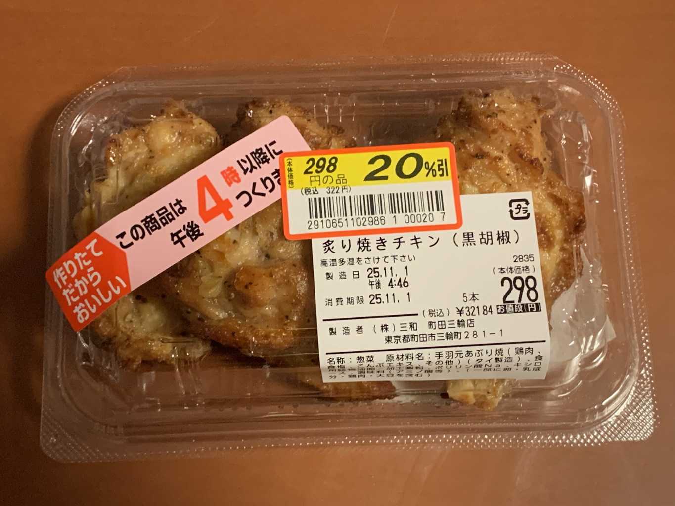 商品研究 「スーパー三和」の「炙り焼きチキン(黒胡椒)」本体価格298円を試食「スーパー三和」の「炙り焼きチキン(黒胡椒)」本体価格298円を試食します。悪くはないですけどね。どこにでもあるアイテムでか、夕方の「スーパー三和」の売場でだいたい見切って売っていますね。