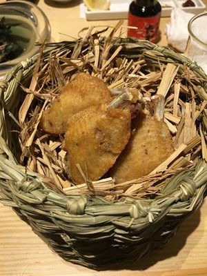 バスケットに入った鳥の唐揚げ、メンチカツ、親子丼の再構築を食べました。食後はレモンパイの再構築。