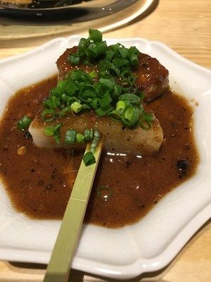 フォアグラ大根串。ペッパーのきいたソース。