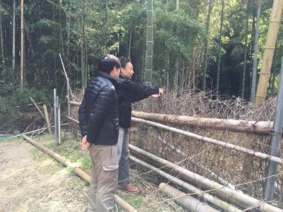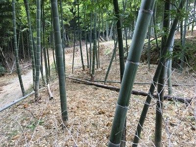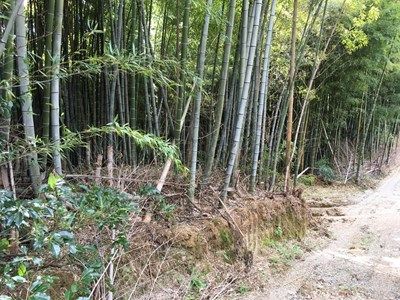 食用バラでお世話になっているおくださんから、いい筍があるのでどうかとオファーをいただきあましたので、おくださんのお父さんがやられている竹林を視察に来ております。