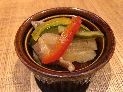 まずは、お通しのマリネをいただきながら、アンティパスト・ミストの注文。