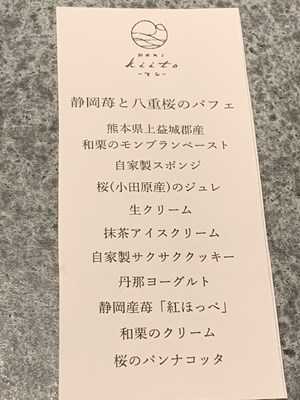 本日は季節のモンブランパフェ、静岡苺と八重桜のパフェ(カフェ付き、2,750円)を注文します。