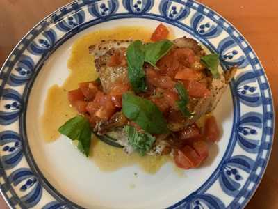 このバジルオイルの下処理した鶏肉は『マルエツ』にもあったと思いますが、トマトのコンカッセを最後に入れて一緒にするとおいしいですよ。