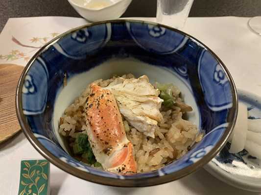 蟹の炊き込みご飯としそ大根の漬物