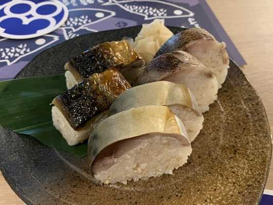 生の鯖寿司、炙り鯖寿司、焼き鯖寿司はまずまず。