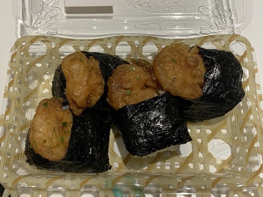 名古屋からの帰りは「美濃味匠」の「夢天むす」4コ840円を試食します。