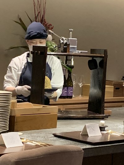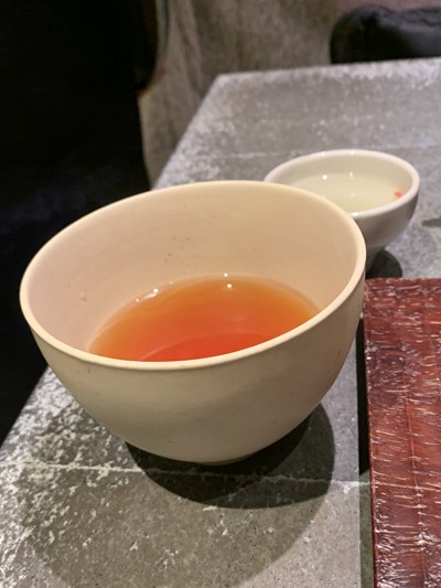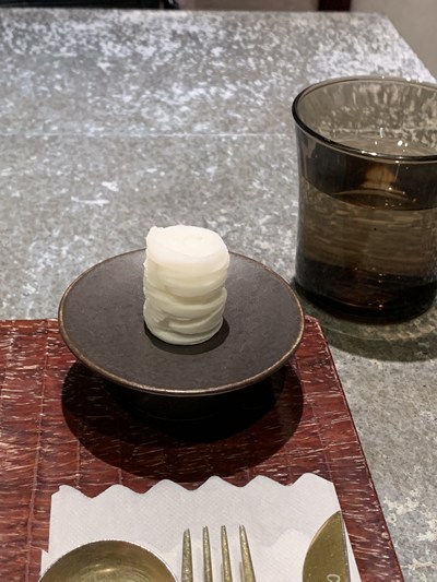 伊豆大島の「海の精」の焼きしおが一緒に提供されてかけると甘味が引き立つとのことですが、