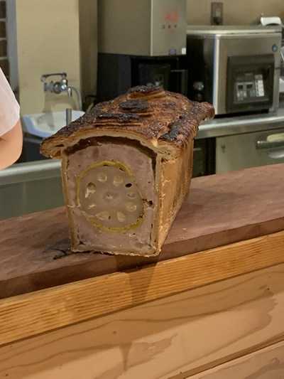 わお!パテアンクルートを割ると辛子蓮根を鋳込んでありますね。