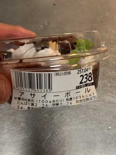 「ヤオコー」の「アサイーボール」本体価格238円を試食します。