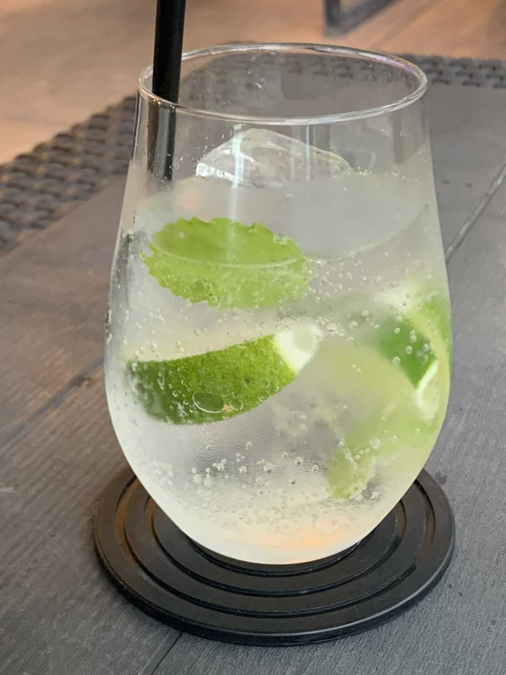ライムのシロップ(たぶん自家製)にライムとフレッシュミントを入れる。