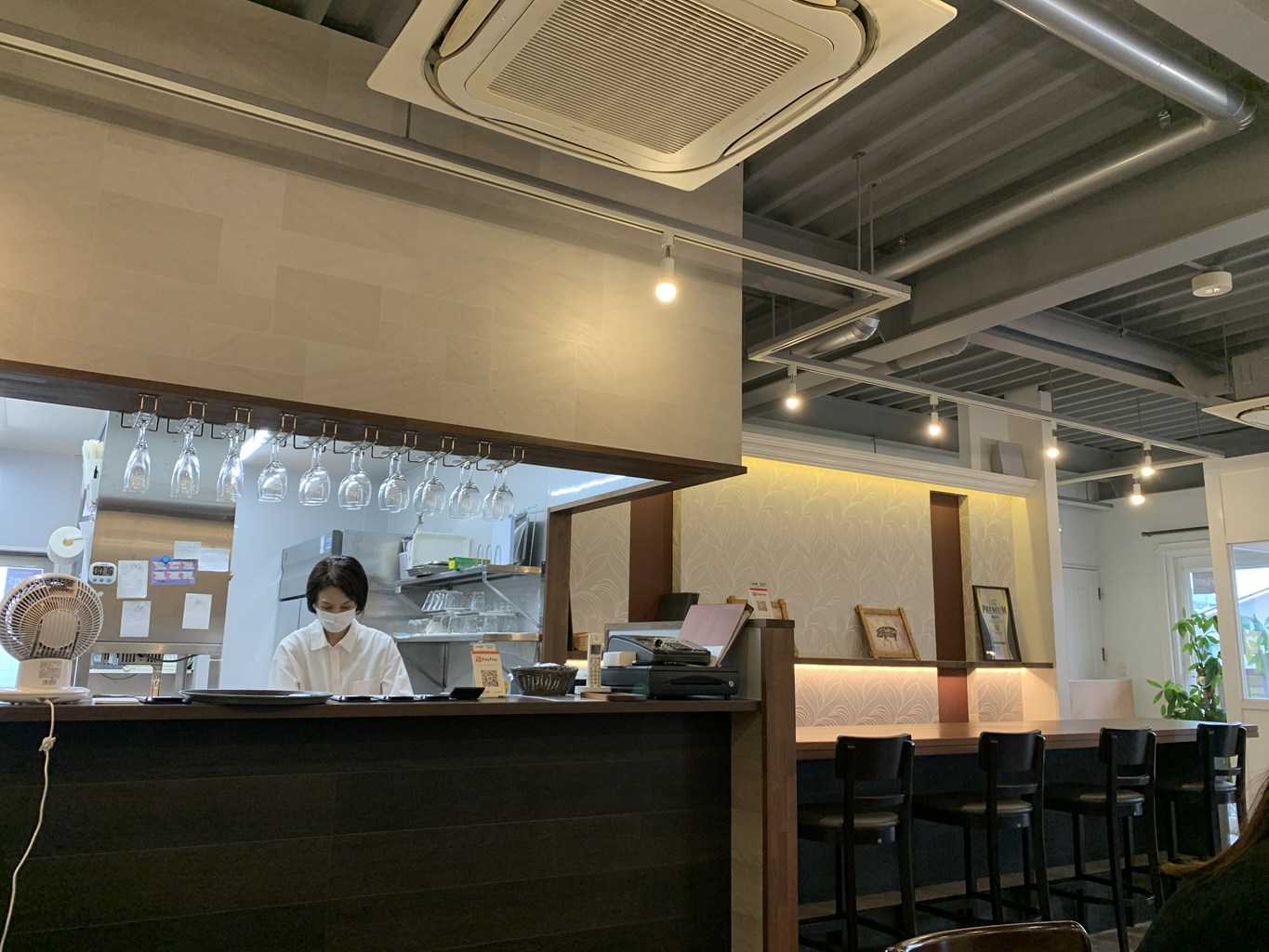厨房にいるのはオーナーシェフだと思いますが、女性スタッフ(順当なら奥様)ときびきびやっているのが見えます。逆に厨房からも客席が見渡せて運営しやすいと思います。