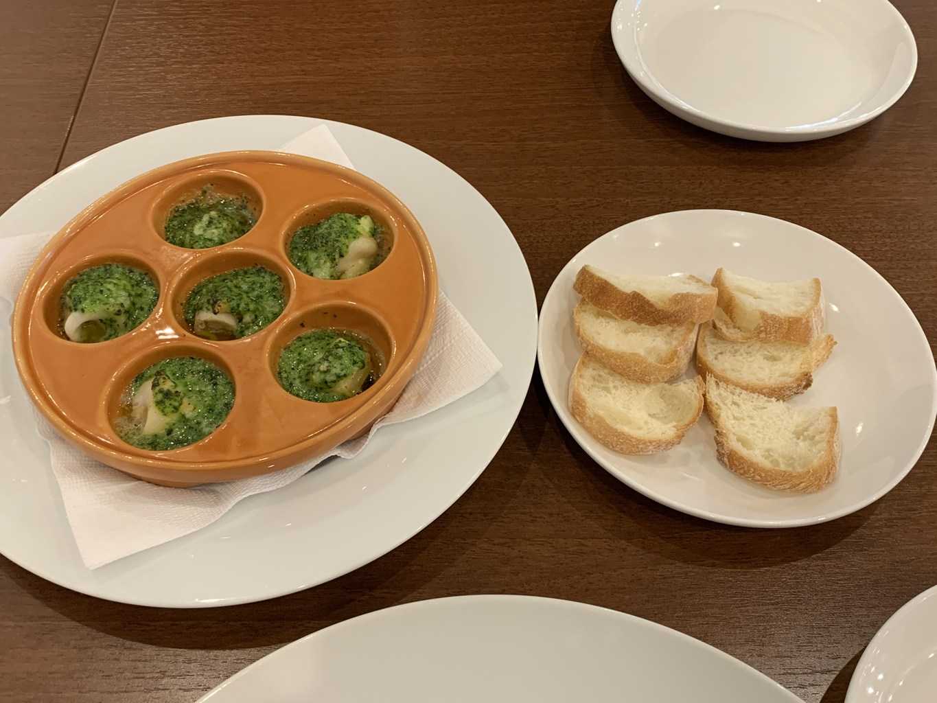 こちらがツブ貝のブルゴーニュ風で、エスカルゴみたいですね。